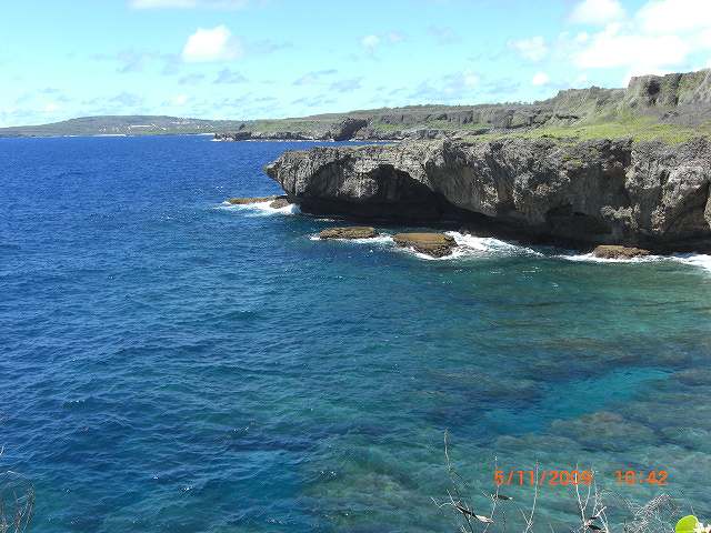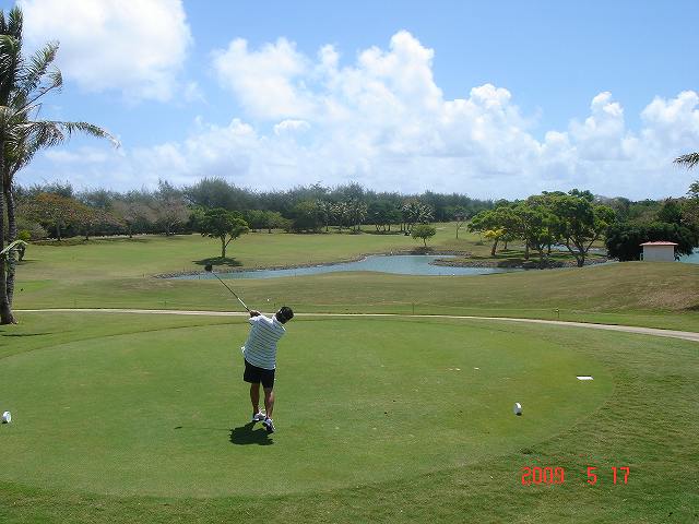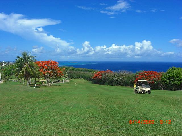 サイパン島でも一番北にあるゴルフ場です。併設してマリアナリゾート&スパというホテルがあります。海抜が比較的高い為、各ホールから海が見渡せます。海の色が違うところでライトブルーの中にはマニャガハ島が見えずらいですが、あるのです。