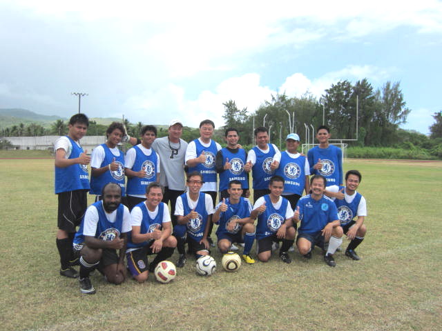 私が昨年から参加している草サッカーチームのチームメイトです。今月から5月いっぱいまで春のリーグ戦が始まり、13日が我がチームの初戦でした。相手はこれまた姉妹チームのTAN HOLDING FC(光太郎のチームの大人)でした。ちなみに我がチームは、このタンホールディング系列のレストラン「SHIRLEY'S FC シャーリーズFC」です。